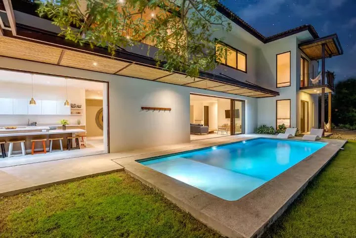 Beautiful two-story beach home, located steps from the beach in Hacienda Pinilla. Designed for comfort and relaxation, this spacious retreat features 4 bedrooms with en-suite bathrooms and private balcony. The house has an open-concept layout connects the modern kitchen, dining area & living room, creating the ideal space for family & friends.